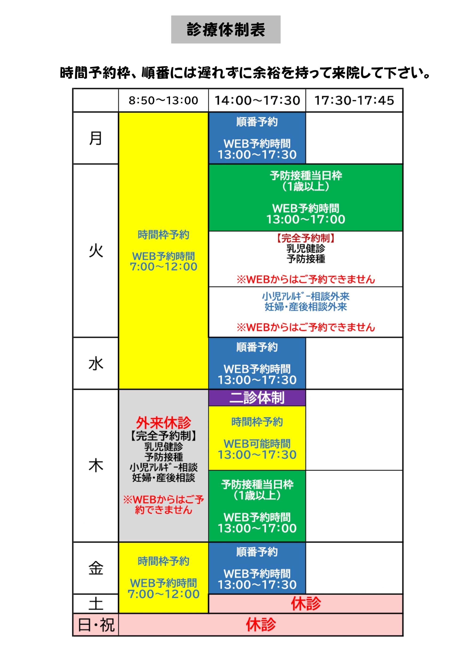 火曜・木曜の16:30~18:00は【予防接種専用 当日予約枠】1歳以上の元気なお子様専用の時間帯となり、完全予約枠になります。